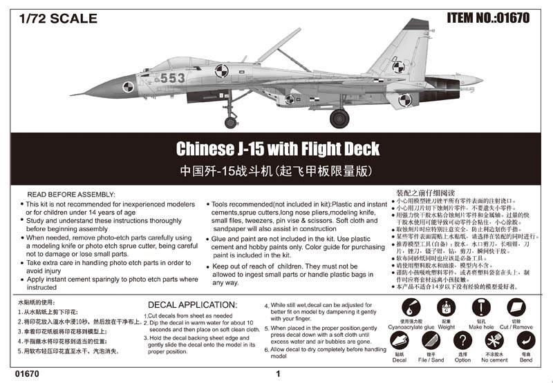 The kit consists of over 230 parts , includes 6 clear parts - fuselage&wing with finely engraved panel lines - includes 3 figure - includes flight deck |