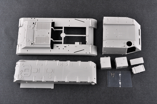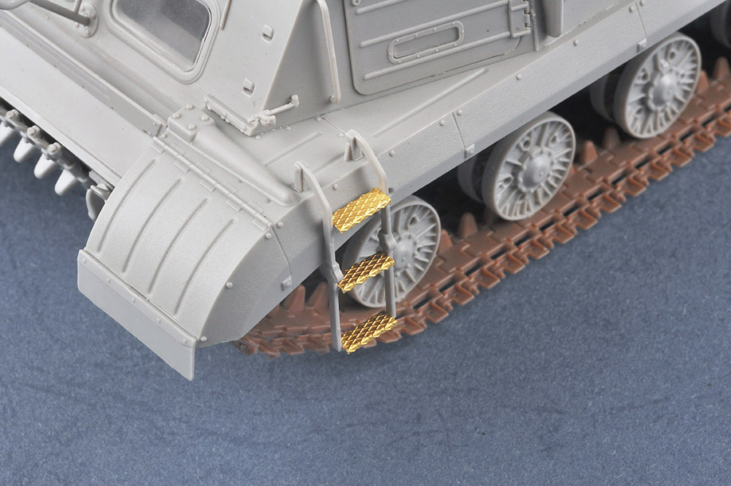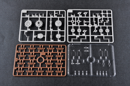 Detailed multi-directional slide-molded cab. > The windshield and side windows are made of clear prts. > individual tracks links included > Photo-etched parts included |
