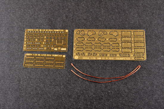 The kit consists of over 1100 parts >the kit w/refined detail >multi-slide moulded lower hull , upper hull >228 individual tracks links >Photo Etched Parts included |