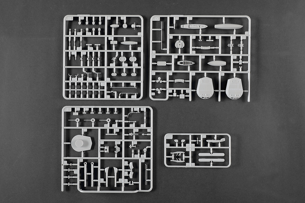 - the kit contains over 510 parts - hull split into two parts - Deck wood pattern finely rendered - Contains display stand - photo etched parts included |